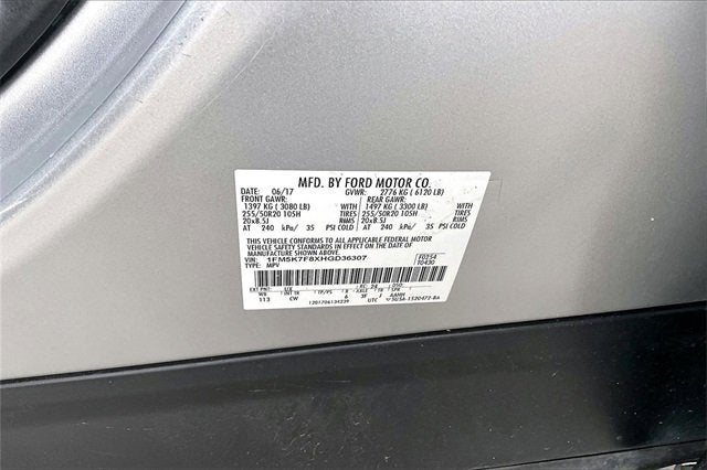 RECALL NOTICE: Some vehicles available for sale may have unrepaired safety recalls issued by the manufacturer. To check the recall status of any vehicle, please visit www.nhtsa.gov/recalls. **LOCAL TRADE**, PREMIUM AUDIO, PREMIUM WHEELS, SECURITY SYSTEM, Explorer Limited, 4D Sport Utility, 3.5L V6 Ti-VCT, 6-Speed Automatic with Select-Shift, FWD, Ingot Silver, Ebony Black Leather, 12 Speakers, 20 Polished Aluminum Wheels, 20 Premium Painted Aluminum Wheels, 3.39 Non-Limited-Slip Axle Ratio, 3rd row seats: split-bench, 4-Wheel Disc Brakes, ABS brakes, Adjustable pedals, Air Conditioning, Alloy wheels, AM/FM radio: SiriusXM, Auto High Beam Headlights, Auto tilt-away steering wheel, Auto-Dimming Driver's Sideview Mirror, Auto-dimming Rear-View mirror, Automatic temperature control, BLIS Blind Spot Information System, BLIS Plus Inflatable Rear Safety Belts Package, Brake assist, Bumpers: body-color, CD player, Compass, Delay-off headlights, Driver door bin, Driver vanity mirror, Dual front impact airbags, Dual front side impact airbags, Electronic Stability Control, Emergency communication system: SYNC 3 911 Assist, Enhanced Active Park Assist System, Equipment Group 301A, Exterior Parking Camera Rear, Four wheel independent suspension, Front anti-roll bar, Front Bucket Seats, Front Center Armrest, Front dual zone A/C, Front fog lights, Front reading lights, Fully automatic headlights, Garage door transmitter, Heated door mirrors, Heated front seats, Heated rear seats, Heated steering wheel, Illuminated entry, Inflatable Rear Seatbelts, Knee airbag, Lane-Keeping System, Leather steering wheel, Memory seat, Multi-Contour Front Seats w/Active Motion, Navigation System, Occupant sensing airbag, Outside temperature display, Overhead airbag, Overhead console, Panic alarm, Passenger door bin, Passenger vanity mirror, Pedal memory, Perforated Leather Heated/Cooled Bucket Seats, Power door mirrors, Power driver seat, Power Liftgate, Power passenger seat, Power steering, Power windows, Premium audio system: Sony, Radio data system, Radio: Sony Audio System w/Single-CD/MP3-Capable, Rain-Sensing Wipers (Front Only), Rear air conditioning, Rear anti-roll bar, Rear reading lights, Rear seat center armrest, Rear window defroster, Rear window wiper, Remote keyless entry, Roof rack: rails only, Security system, Speed control, Speed-sensing steering, Speed-Sensitive Wipers, Split folding rear seat, Spoiler, Steering wheel memory, Steering wheel mounted audio controls, SYNC 3 Communications & Entertainment System, Tachometer, Telescoping steering wheel, Tilt steering wheel, Traction control, Trip computer, Turn signal indicator mirrors, Variably intermittent wipers, Ventilated front seats.