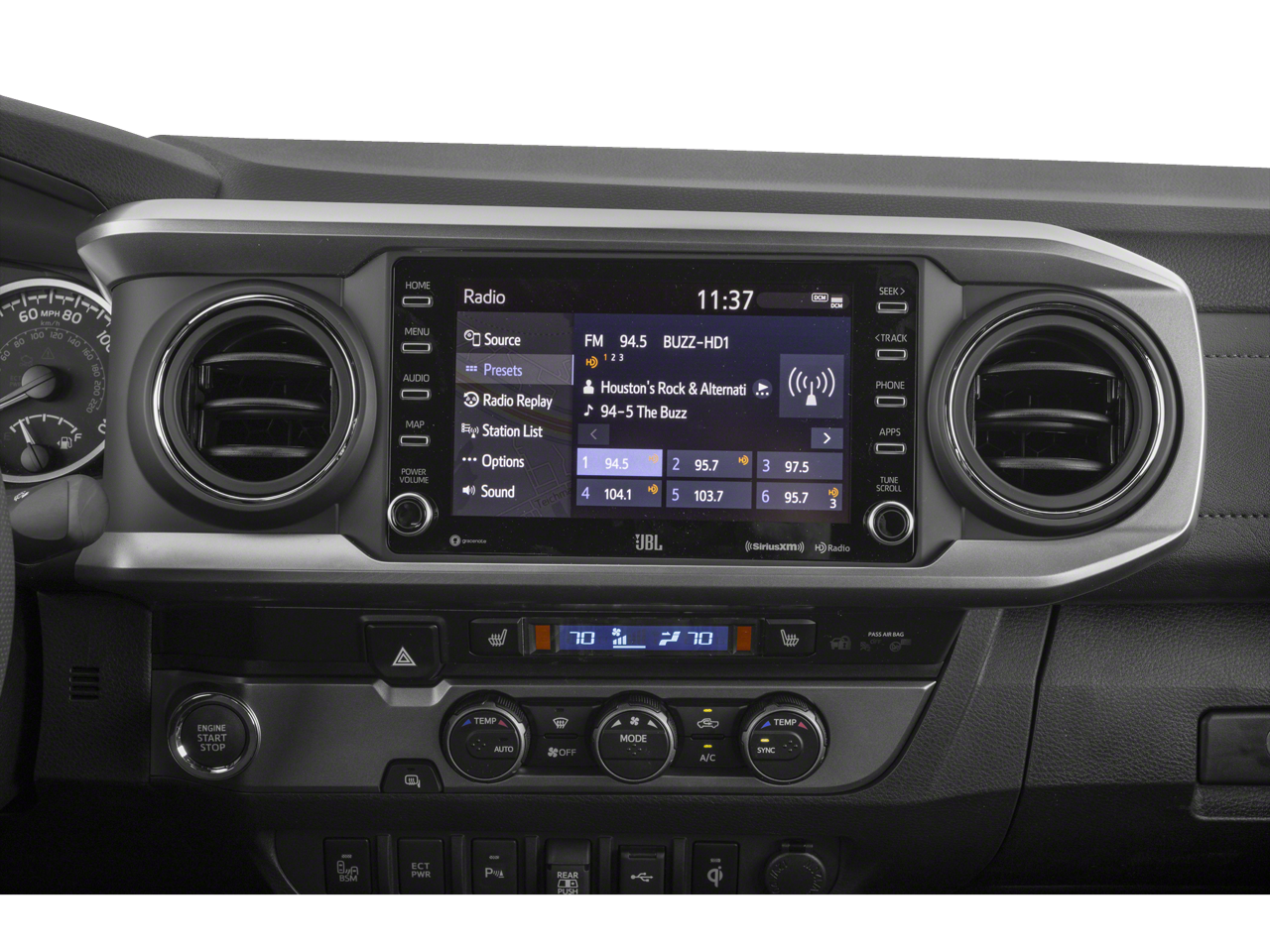 - Radio: Premium JBL AM/FM w/Nav & App Radio -inc: MP3/WMA playback capability, 6 JBL speakers w/subwoofer, 8" high-resolution touch-screen display w/split screen, auxiliary port, USB media port, Siri Eyes Free, advanced voice recognition, Bluetooth® hands-free phone capability, phone book access and music streaming, cache radio, HD Radio, HD predictive traffic and Doppler weather overlay, SiriusXM satellite radio w/complimentary SiriusXM Satellite All Access 3-month trial subscription included, Apple CarPlay, Android Auto, Amazon Alexa, SiriusXM and Gracenotes album cover art