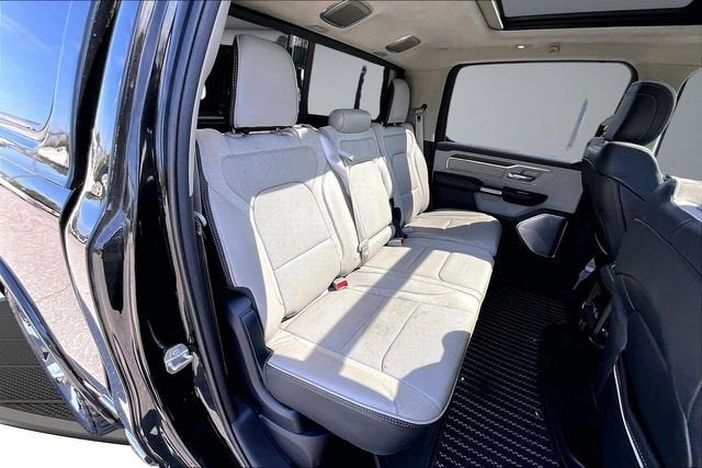 RECALL NOTICE: Some vehicles available for sale may have unrepaired safety recalls issued by the manufacturer. To check the recall status of any vehicle, please visit www.nhtsa.gov/recalls. Priced below KBB Fair Purchase Price! PREMIUM AUDIO, PREMIUM WHEELS, SECURITY SYSTEM, 1500 Limited, 4D Crew Cab, HEMI 5.7L V8 Multi Displacement VVT, 8-Speed Automatic, RWD, Diamond Black Crystal Pearlcoat, Indigo/Sea Salt Leather, 10 Speakers, 3.92 Rear Axle Ratio, 33 Gallon Fuel Tank, 4 Way Front Headrests, 4-Wheel Disc Brakes, 48V Belt Starter Generator, ABS brakes, Active Noise Control System, Adjustable pedals, Air Conditioning, Alloy wheels, AM/FM radio, Anti-Spin Differential Rear Axle, Apple CarPlay/Android Auto, Audio memory, Auto High-beam Headlights, Auto-dimming door mirrors, Auto-Dimming Exterior Driver Mirror, Auto-Dimming Exterior Passenger Mirror, Auto-dimming Rear-View mirror, Auto-leveling suspension, Automatic temperature control, Body Color Bumper Group, Body Color Front Bumper, Body Color Rear Bumper w/Step Pads, Bodyside moldings, Brake assist, Bucket Seats, Bumpers: chrome, Chrome Exterior Mirrors, Compass, Convex Wide-Angle Mirror Insert, Delay-off headlights, Dome Dual LED Reading Lamp, Driver door bin, Driver Seat Memory, Driver vanity mirror, Dual front impact airbags, Dual front side impact airbags, Dual Rear Exhaust w/Bright Tips, Dual-Pane Panoramic Sunroof, Electronic Stability Control, Exterior Mirrors Courtesy Lamps, Exterior Mirrors w/Heating Element, Exterior Mirrors w/Memory, Exterior Mirrors w/Supplemental Signals, Exterior Parking Camera Rear, Front anti-roll bar, Front Bucket Seats, Front Center Armrest w/Storage, Front dual zone A/C, Front fog lights, Front reading lights, Front Seat Back Map Pockets, Front wheel independent suspension, Full Length Premium Floor Console, Fully automatic headlights, Garage door transmitter, Genuine wood console insert, Genuine wood dashboard insert, Genuine wood door panel insert, harman/kardon 19 Speaker Premium Sound, Heated door mirrors, Heated Front Seats, Heated front seats, Heated rear seats, Heated Second Row Seats, Heated Steering Wheel, Heated steering wheel, Heavy-Duty Engine Cooling, HEMI Badge, Illuminated entry, Instrument Cluster Theme 8, Leather steering wheel, LED Dome/Reading Lamp, Limited 10th Anniversary Edition, Low tire pressure warning, Memory seat, MOPAR 4 Adjustable Cargo Tie-Down Hooks, MOPAR Bright Pedal Kit, MOPAR Deployable Bed Step Center Mount, Multi-Function Tailgate, Navigation System, Occupant sensing airbag, Outside temperature display, Overhead airbag, Overhead console, Panic alarm, Passenger door bin, Passenger vanity mirror, Pedal memory, Power 4-Way Driver Lumbar Adjust, Power 4-Way Passenger Lumbar Adjust, Power 8-Way Driver & Passenger Seats, Power door mirrors, Power driver seat, Power passenger seat, Power steering, Power windows, Power-Folding Mirrors, Premium Leather Trimmed Bucket Seats, Premium Quilted Leather Bucket Seats, Quick Order Package 27M Limited, Radio data system, Radio: Uconnect 5 Nav w/12.0 Display, Rain sensing wipers, Rear 60/40 Folding Split Recline Seat, Rear anti-roll bar, Rear seat center armrest, Rear step bumper, Rear window defroster, Remote keyless entry, Rotary Shifter-Jeweled, Security system, Speed control, Split folding rear seat, Steering wheel mounted audio controls, Suede Headliner, Tachometer, Tailgate Ajar Warning Lamp, Telescoping steering wheel, Tilt steering wheel, Traction control, Trip computer, Turn signal indicator mirrors, Variably intermittent wipers, Ventilated Front Seats, Ventilated front seats, Ventilated Rear Seats, Voltmeter, Wheels: 20 x 9 Aluminum Painted/Polished, Wheels: 22 x 9 Polish/Painted w/Inserts.