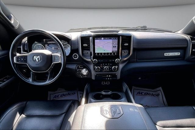 RECALL NOTICE: Some vehicles available for sale may have unrepaired safety recalls issued by the manufacturer. To check the recall status of any vehicle, please visit www.nhtsa.gov/recalls. PREMIUM AUDIO, PREMIUM WHEELS, SECURITY SYSTEM, 1500 Rebel, 4D Crew Cab, HEMI 5.7L V8 Multi Displacement VVT, 8-Speed Automatic, 4WD, Bright White Clearcoat, Black Leather, 2nd Row In Floor Storage Bins, 3.92 Rear Axle Ratio, 4 Way Front Headrests, 4-Wheel Disc Brakes, 48V Belt Starter Generator, 4G LTE Wi-Fi Hot Spot, 6 Speakers, 8.4 Touchscreen Display, ABS brakes, Air Conditioning, Air Conditioning ATC w/Dual Zone Control, All R1 High Radios, All Radio Equipped Vehicles, Alloy wheels, AM/FM radio: SiriusXM, Apple CarPlay, Auto-Dimming Exterior Driver Mirror, Auto-dimming Rear-View mirror, Black Exterior Mirrors, Black Front Bumper w/Black Plate, Black Premium Power Mirrors, Bluetooth® Handsfree Phone & Audio, Brake assist, Bucket Seats, Cloth/Vinyl Low Back Bucket Seats, Compass, Connected Travel & Traffic Services, Connectivity - US/Canada, Convex Wide-Angle Mirror Insert, Delay-off headlights, Disassociated Touchscreen Display, Driver door bin, Dual front impact airbags, Dual front side impact airbags, Electric Shift-On-Demand Transfer Case, Electronic Stability Control, Emergency communication system: SiriusXM Guardian, Exterior Mirrors Courtesy Lamps, Exterior Mirrors w/Heating Element, Exterior Mirrors w/Supplemental Signals, Foam Bottle Insert (Door Trim Panel), For Details, Visit DriveUconnect.com, For More Info, Call 800-643-2112, Front anti-roll bar, Front Bucket Seats, Front Center Armrest w/Storage, Front fog lights, Front License Plate Bracket, Front reading lights, Front Seat Back Map Pockets, Front wheel independent suspension, Full Length Upgraded Floor Console, Fully automatic headlights, Global Telematics Box Module (TBM), Google Android Auto, GPS Antenna Input, GPS Navigation, Grille Surround 2 Black Texture 3 Black, HD Radio, Heated door mirrors, Heated Front Seats, Heated Steering Wheel, Illuminated entry, Integrated Center Stack Radio, Integrated Voice Command w/Bluetooth®, Leather steering wheel, Low tire pressure warning, MOPAR Spray In Bedliner, Night Edition, Occupant sensing airbag, Off-Road Information Pages, Outside temperature display, Overhead airbag, Overhead console, Panic alarm, ParkView Rear Back-Up Camera, Passenger door bin, Passenger vanity mirror, Power 2-Way Driver Lumbar Adjust, Power Adjustable Pedals, Power door mirrors, Power driver seat, Power steering, Power windows, Power-Folding Mirrors, Quick Order Package 27W Rebel, Radio data system, Radio: Uconnect 3 w/5 Display, Radio: Uconnect 5 Nav w/8.4 Display, Radio: Uconnect 5 W w/8.4 Display, RAM Grille Badge - Black, Rear 60/40 Folding Seat, Rear anti-roll bar, Rear Dome w/On/Off Switch Lamp, Rear seat center armrest, Rear step bumper, Rear Window Defroster, Rebel Level 1 Equipment Group, Remote keyless entry, Remote Start System, SiriusXM Radio Service, SiriusXM Satellite Radio, SiriusXM w/360L, Speed control, Split folding rear seat, Steering wheel mounted audio controls, Sun Visors w/Illuminated Vanity Mirrors, Tachometer, Telescoping steering wheel, Tilt steering wheel, Traction control, Trip computer, Twill Film Appliques, Universal Garage Door Opener, USB Host Flip, Variably intermittent wipers, Voltmeter, Wheels: 18 x 8.0 Gloss Black, Wheels: 18 x 8.0 Painted Mid-Gloss Black.