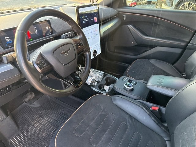 RECALL NOTICE: Some vehicles available for sale may have unrepaired safety recalls issued by the manufacturer. To check the recall status of any vehicle, please visit www.nhtsa.gov/recalls. **LOCAL TRADE**, PREMIUM AUDIO, PREMIUM WHEELS, SECURITY SYSTEM, Mustang Mach-E GT, 4D Sport Utility, Single-Speed Automatic, AWD, Shadow Black, Black Onyx With Copper Accent Stitching Copper Metallic Accent Piping, 10 Speakers, 1st & 2nd Row Floor Liners w/o Carpet Mats, 4-Wheel Disc Brakes, ABS brakes, Air Conditioning, Alloy wheels, AM/FM radio: SiriusXM with 360L, AM/FM Stereo, Apple CarPlay/Android Auto, Auto High-beam Headlights, Auto-dimming Rear-View mirror, Automatic temperature control, Axle Ratio: 9.05, Brake assist, Bumpers: body-color, Cargo Floor Liner, Compass, Delay-off headlights, Driver door bin, Driver vanity mirror, Dual front impact airbags, Dual front side impact airbags, Electronic Stability Control, Emergency communication system: 911 Assist, Equipment Group 400A, Exterior Bumper Protection, Exterior Parking Camera Rear, Four wheel independent suspension, Front anti-roll bar, Front Bucket Seats, Front Center Armrest, Front dual zone A/C, Front reading lights, Fully automatic headlights, Garage door transmitter, Heated ActiveX Sport Seats, Heated door mirrors, Heated front seats, Heated steering wheel, Illuminated entry, Interior Protection Package (Pre-Installed), Knee airbag, Low tire pressure warning, Memory seat, Navigation system: Connected Navigation, Occupant sensing airbag, Outside temperature display, Overhead airbag, Overhead console, Panic alarm, Passenger door bin, Passenger vanity mirror, Power door mirrors, Power driver seat, Power Liftgate, Power passenger seat, Power steering, Power windows, Radio data system, Rain sensing wipers, Rear anti-roll bar, Rear seat center armrest, Rear side impact airbag, Rear window defroster, Rear window wiper, Remote keyless entry, Security system, SiriusXM Radio w/360L, Speed control, Speed-sensing steering, Speed-Sensitive Wipers, Split folding rear seat, Spoiler, Steering wheel mounted audio controls, SYNC 4A w/Enhanced Voice Recognition, Telescoping steering wheel, Tilt steering wheel, Traction control, Trip computer, Turn signal indicator mirrors, Variably intermittent wipers, Wheels: 20 Machined-Face Aluminum. 90/77 City/Highway MPG